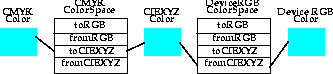 Figure 6-2 shows the same process using CIEXYZ as the conversion space. When CIEXYZ is used, the color is passed through accurately.