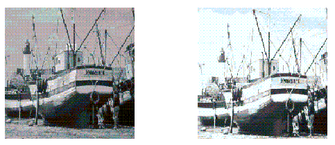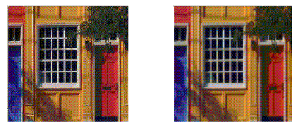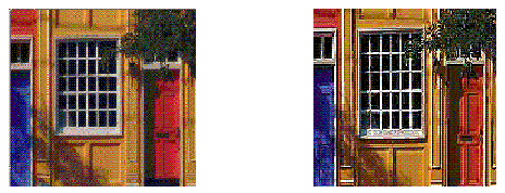 The convolution kernel in this example is relatively simple. It weights each pixel from the source image equally. By choosing a kernel that weights the source image at a higher or lower level, a program can increase or decrease the intensity of the destination image. The Kernel object, which is set in the ConvolveOp constructor, determines the type of filtering that is performed. By setting other values, you can perform other types of convolutions, including blurring (such as Gaussian blur, radial blur, and motion blur), sharpening, and smoothing operations. Figure 5-8 illustrates sharpening using Convolution.