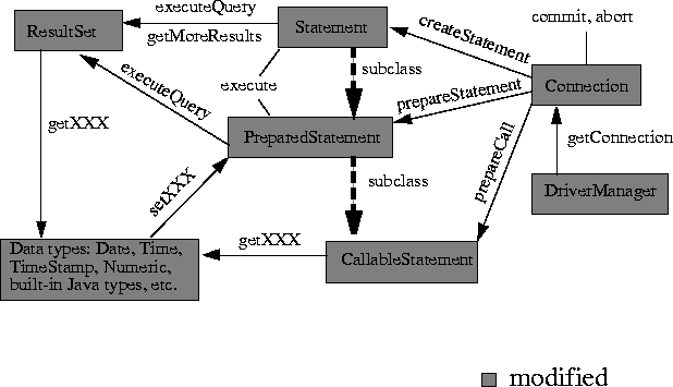 java.sql interfaces and classes listed above. The figure below shows the more important