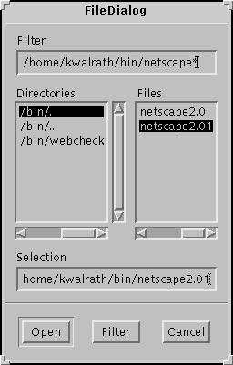 Here is a picture of the FileDialog window that the Solaris Applet Viewer brings up: