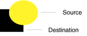 If pixels in the source and the destination overlap, only the source pixels in the overlapping area are rendered. Source-out ( SRC_OUT)