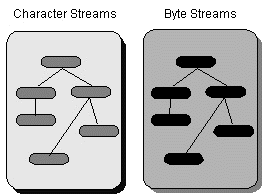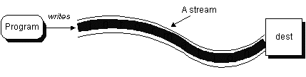 Often programs need to bring in information from an external source or send out information to an external destination. The information can be anywhere: in a file, on disk, somewhere on the network, in memory, or in another program. Also, it can be of any type: objects, characters, images, or sounds.To bring in information, a program opens a stream on an information source (a file, memory, a socket) and reads the information serially, like this: